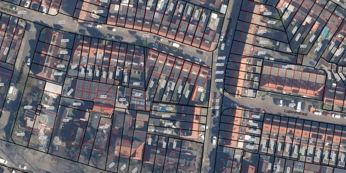 Gebruik de zoekbalk of klik op een perceel om informatie over het perceel te bekijken.