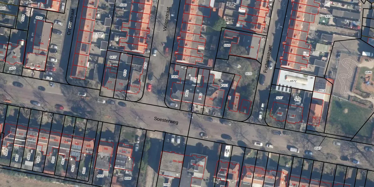 Gebruik de zoekbalk of klik op een perceel om informatie over het perceel te bekijken.