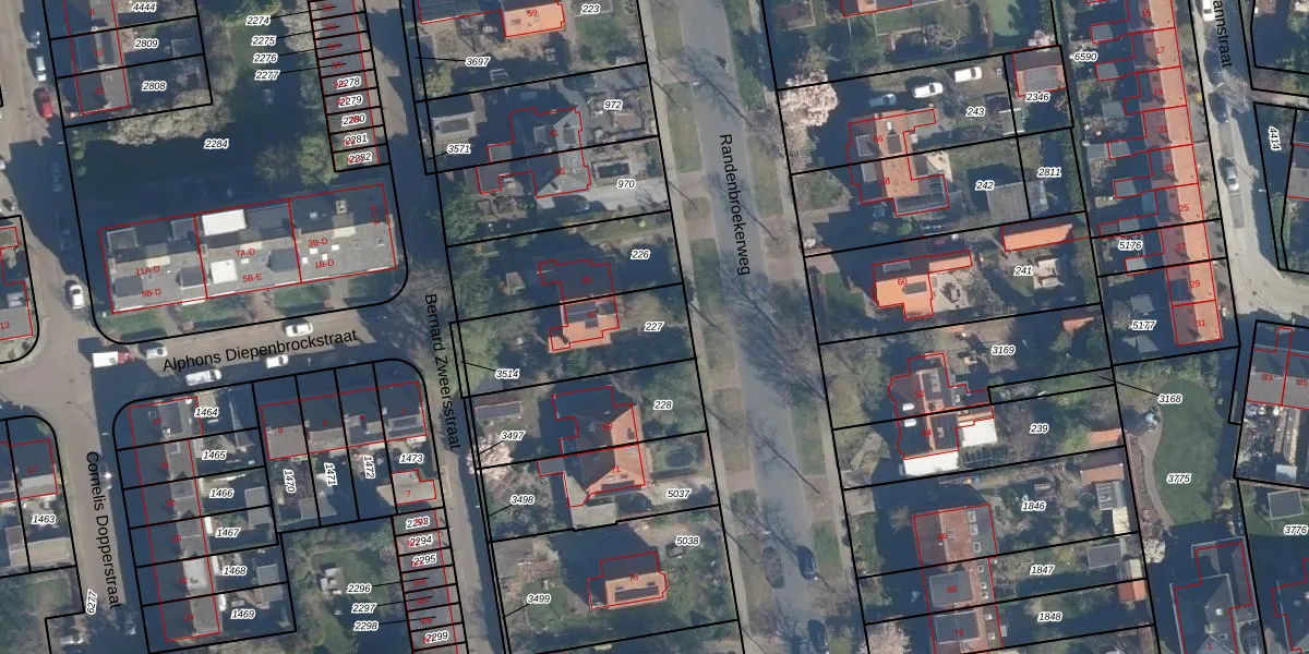 Gebruik de zoekbalk of klik op een perceel om informatie over het perceel te bekijken.