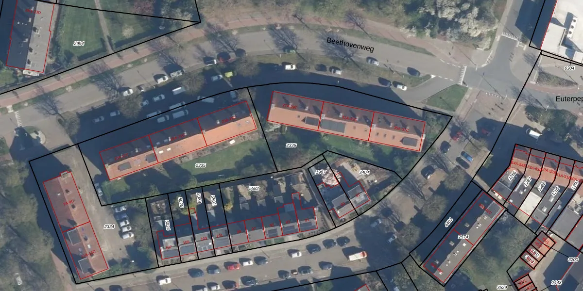Gebruik de zoekbalk of klik op een perceel om informatie over het perceel te bekijken.