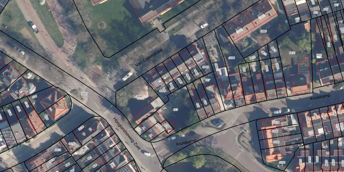 Gebruik de zoekbalk of klik op een perceel om informatie over het perceel te bekijken.