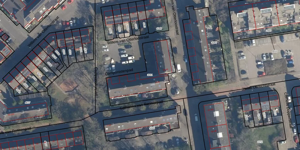 Gebruik de zoekbalk of klik op een perceel om informatie over het perceel te bekijken.