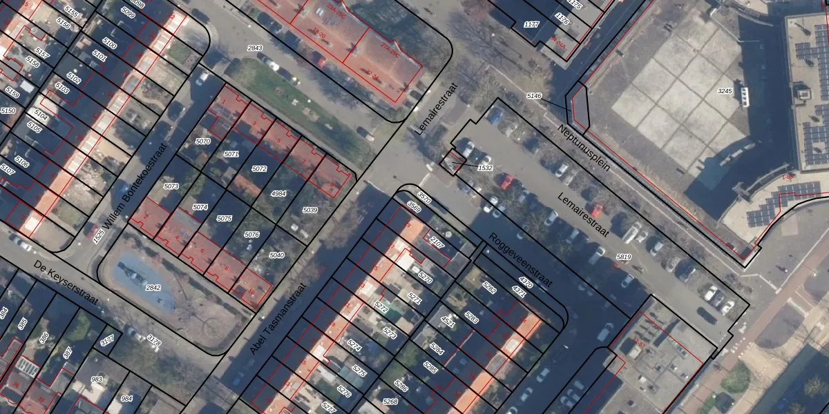 Gebruik de zoekbalk of klik op een perceel om informatie over het perceel te bekijken.