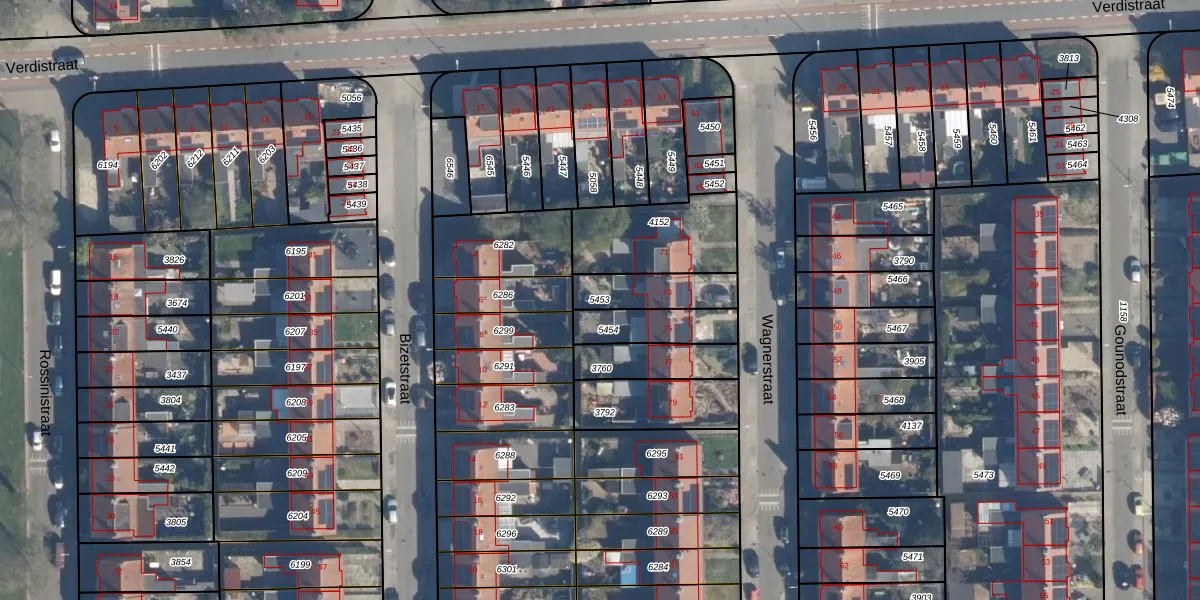 Gebruik de zoekbalk of klik op een perceel om informatie over het perceel te bekijken.