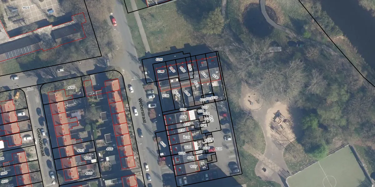 Gebruik de zoekbalk of klik op een perceel om informatie over het perceel te bekijken.