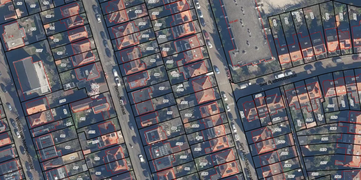 Gebruik de zoekbalk of klik op een perceel om informatie over het perceel te bekijken.