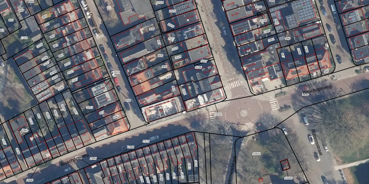 Gebruik de zoekbalk of klik op een perceel om informatie over het perceel te bekijken.