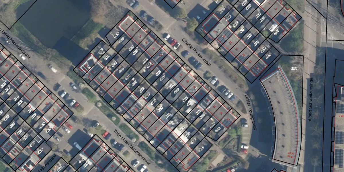 Gebruik de zoekbalk of klik op een perceel om informatie over het perceel te bekijken.