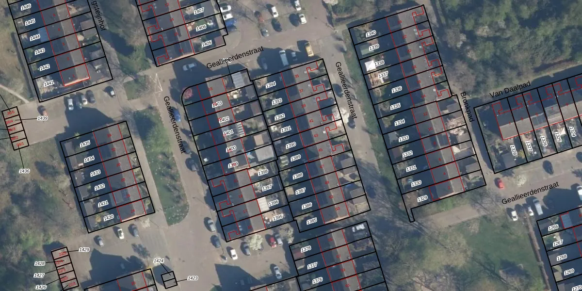 Gebruik de zoekbalk of klik op een perceel om informatie over het perceel te bekijken.