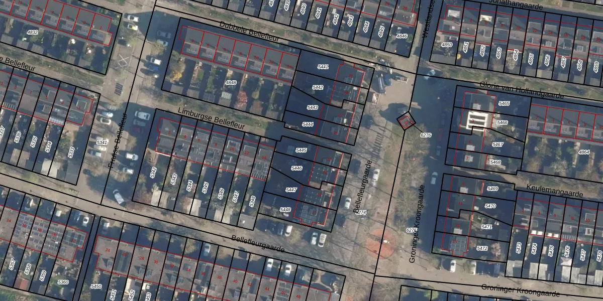Gebruik de zoekbalk of klik op een perceel om informatie over het perceel te bekijken.