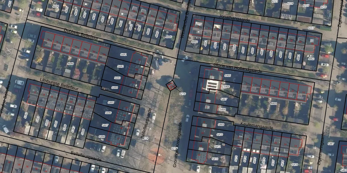 Gebruik de zoekbalk of klik op een perceel om informatie over het perceel te bekijken.