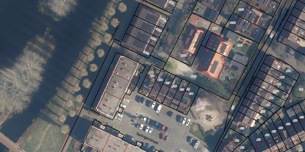 Gebruik de zoekbalk of klik op een perceel om informatie over het perceel te bekijken.