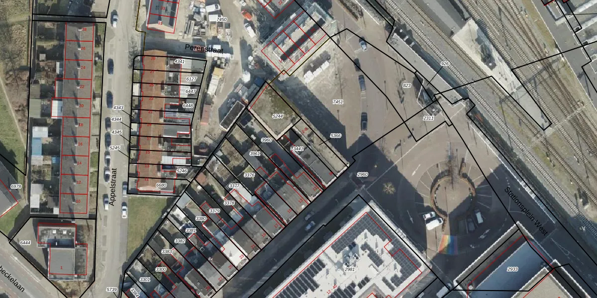 Gebruik de zoekbalk of klik op een perceel om informatie over het perceel te bekijken.
