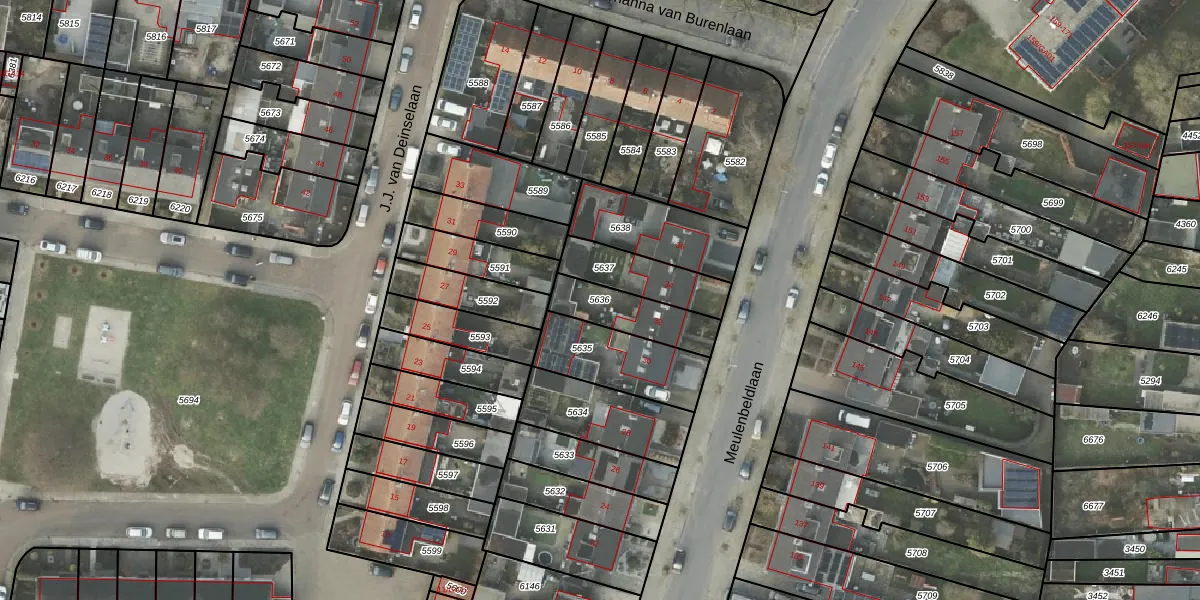 Gebruik de zoekbalk of klik op een perceel om informatie over het perceel te bekijken.