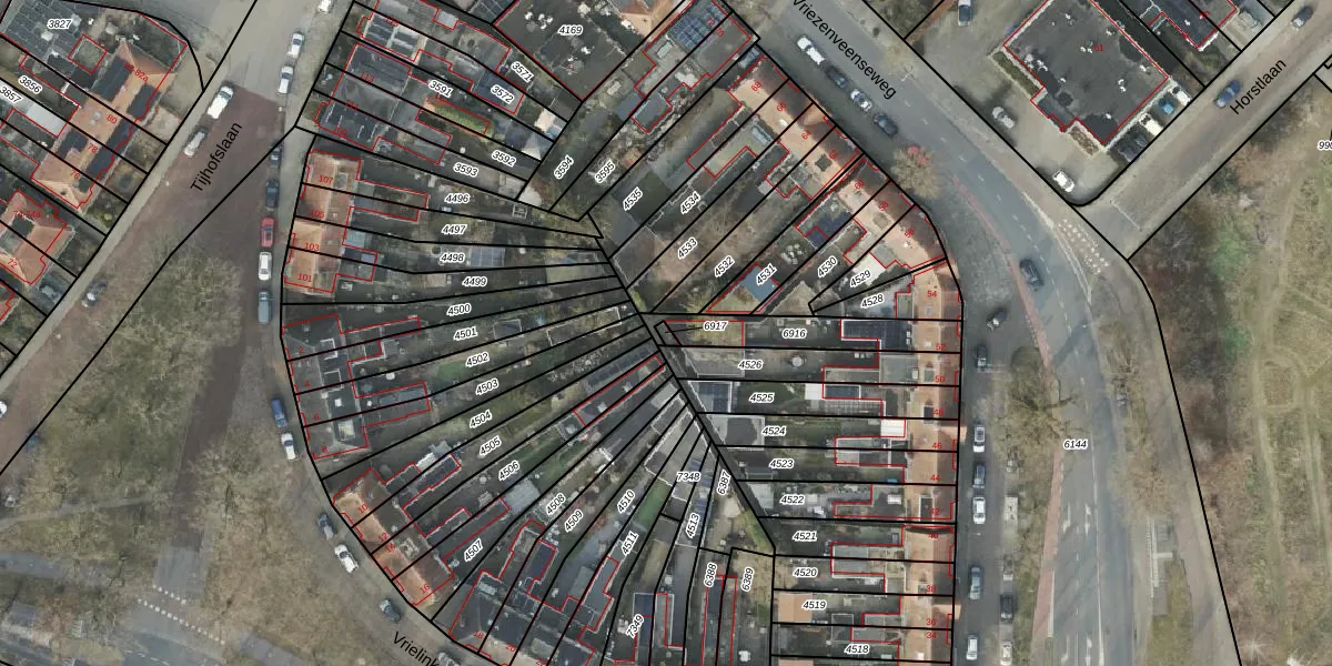 Gebruik de zoekbalk of klik op een perceel om informatie over het perceel te bekijken.