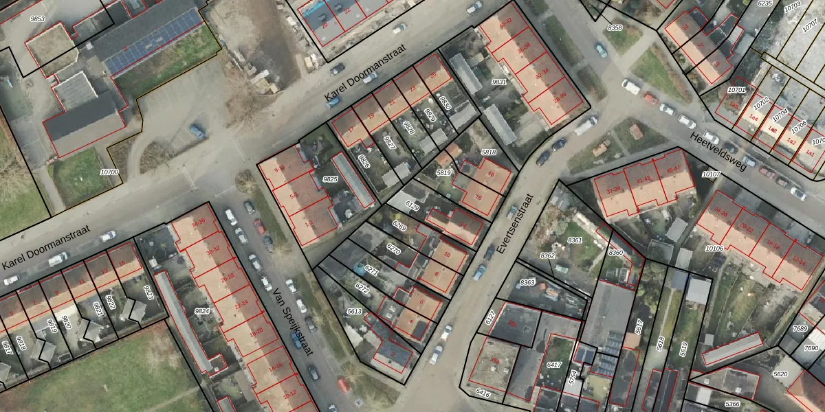 Gebruik de zoekbalk of klik op een perceel om informatie over het perceel te bekijken.