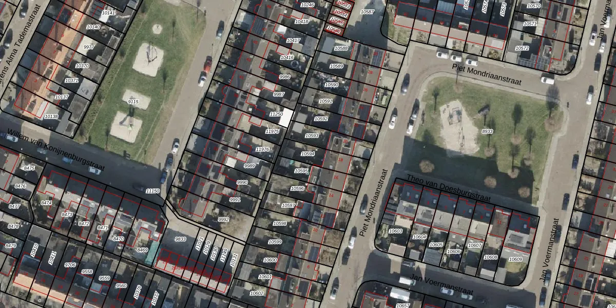 Gebruik de zoekbalk of klik op een perceel om informatie over het perceel te bekijken.