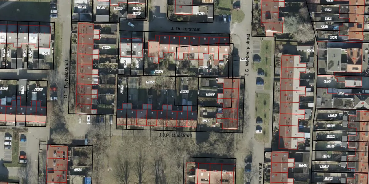 Gebruik de zoekbalk of klik op een perceel om informatie over het perceel te bekijken.