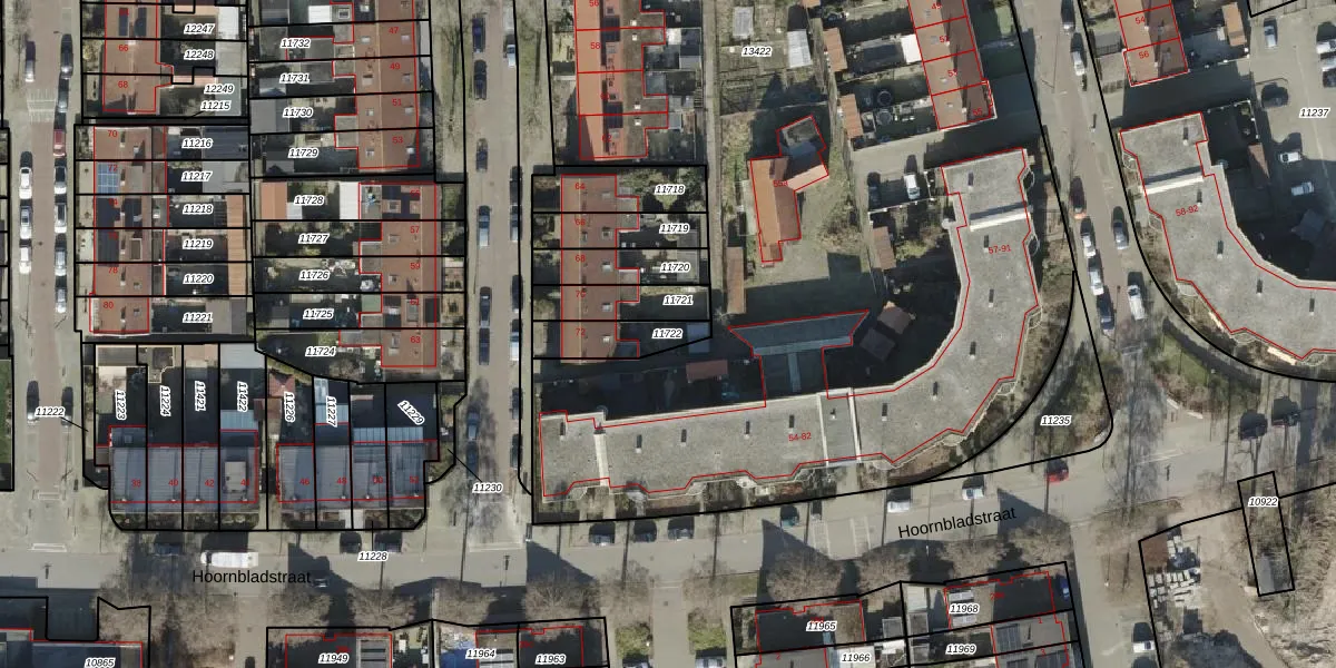 Gebruik de zoekbalk of klik op een perceel om informatie over het perceel te bekijken.