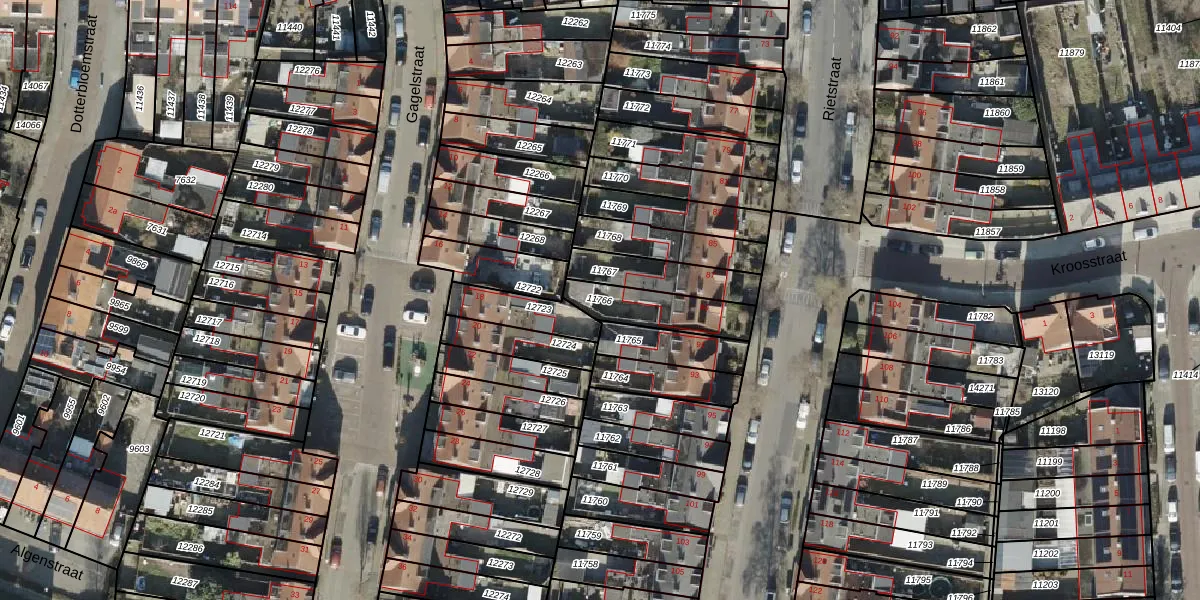 Gebruik de zoekbalk of klik op een perceel om informatie over het perceel te bekijken.