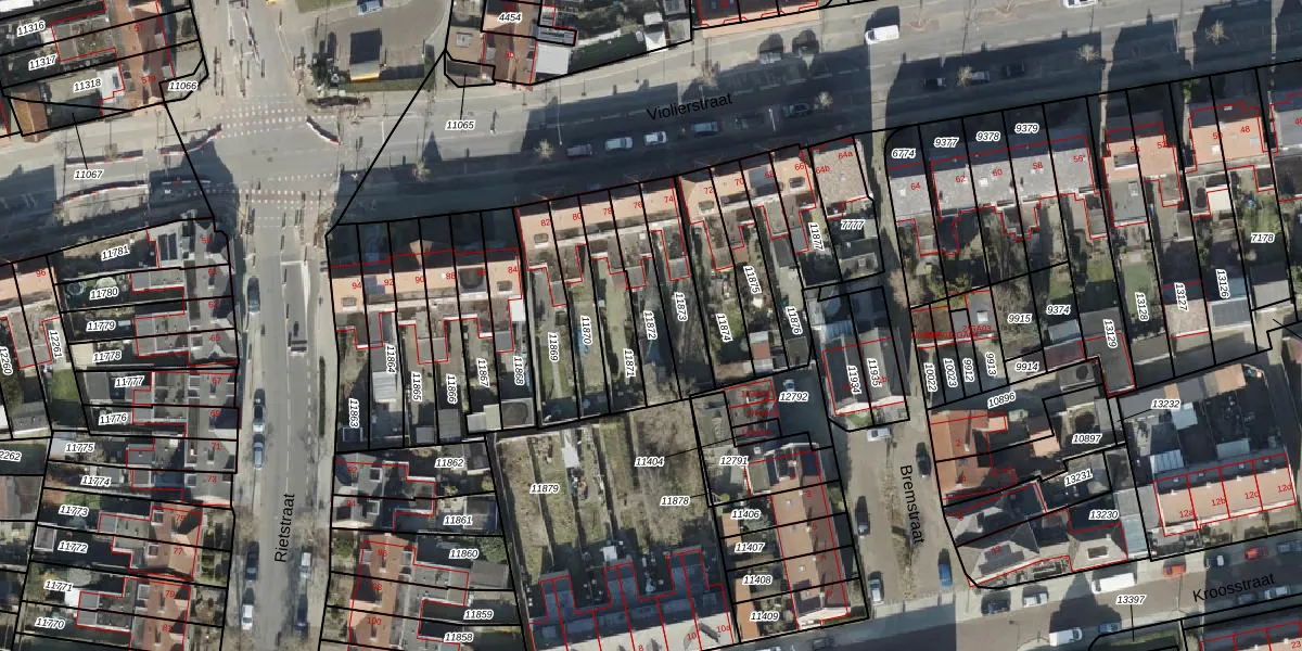 Gebruik de zoekbalk of klik op een perceel om informatie over het perceel te bekijken.