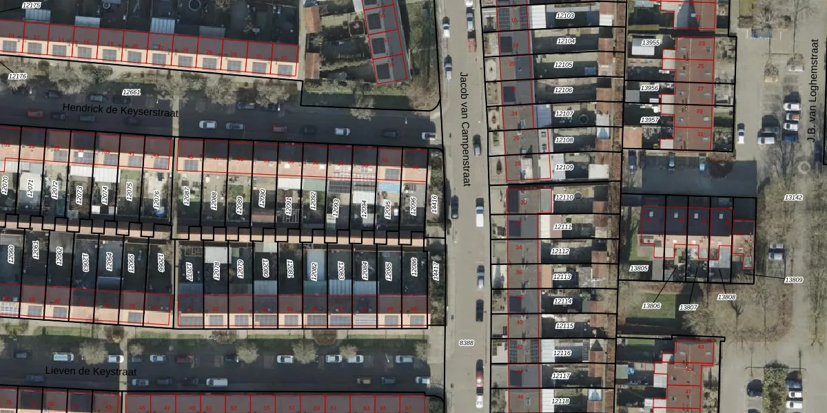Gebruik de zoekbalk of klik op een perceel om informatie over het perceel te bekijken.