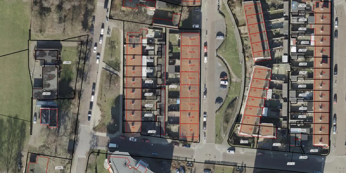 Gebruik de zoekbalk of klik op een perceel om informatie over het perceel te bekijken.