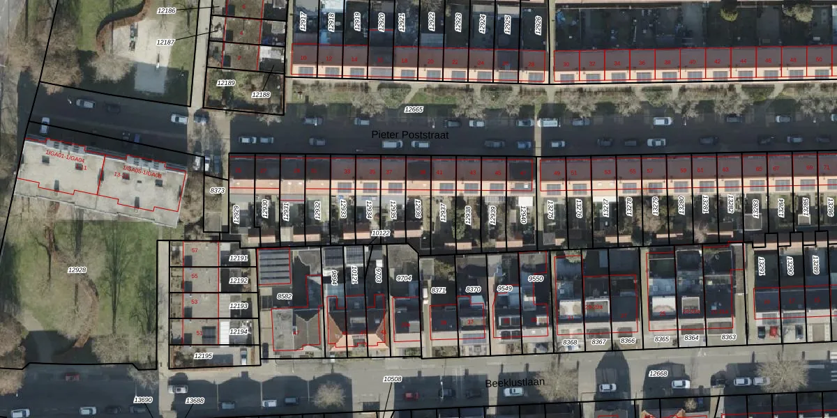 Gebruik de zoekbalk of klik op een perceel om informatie over het perceel te bekijken.