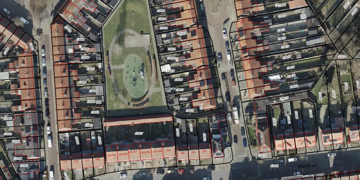 Gebruik de zoekbalk of klik op een perceel om informatie over het perceel te bekijken.
