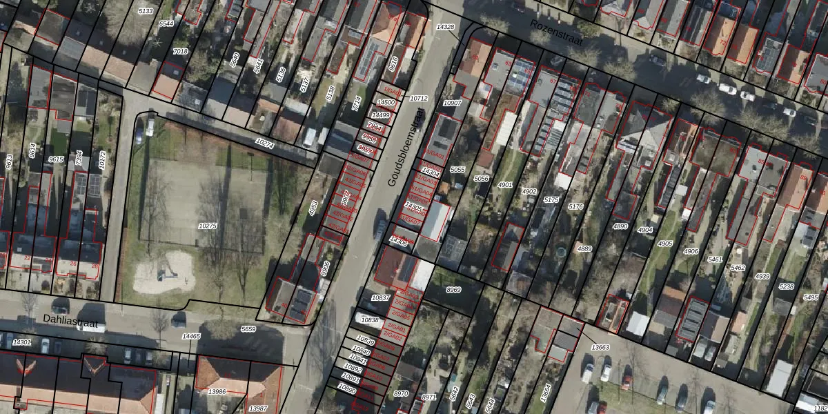 Gebruik de zoekbalk of klik op een perceel om informatie over het perceel te bekijken.