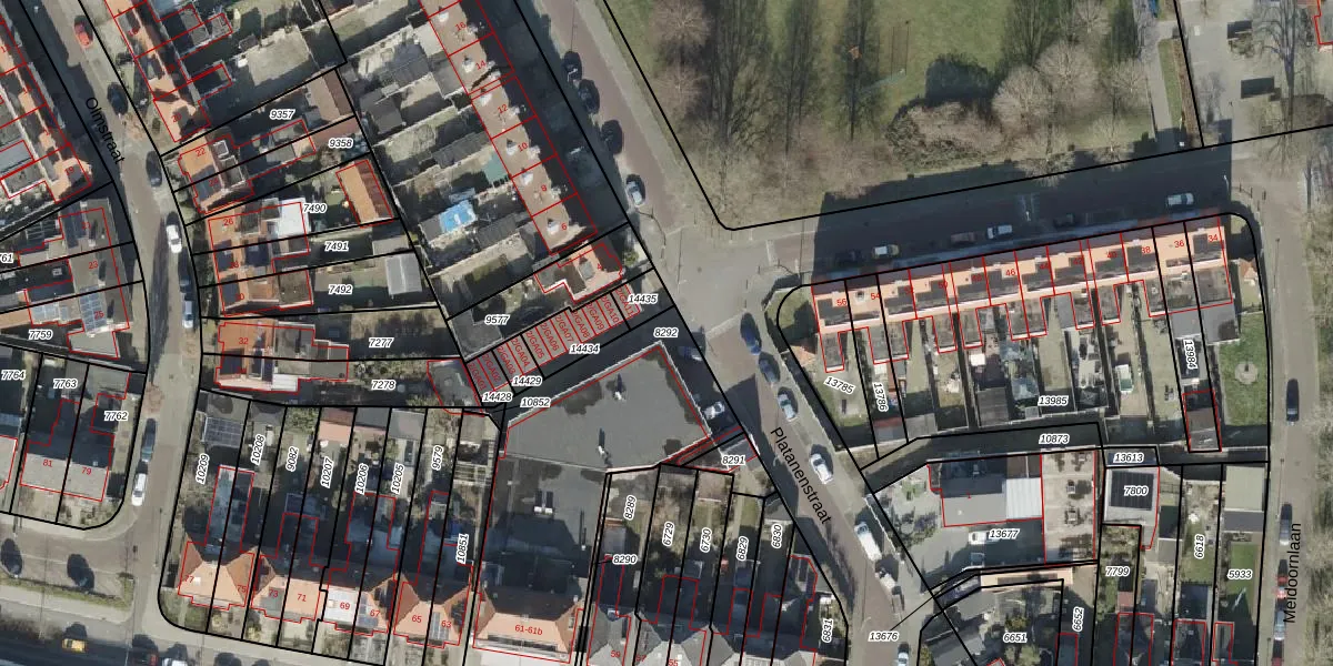 Gebruik de zoekbalk of klik op een perceel om informatie over het perceel te bekijken.