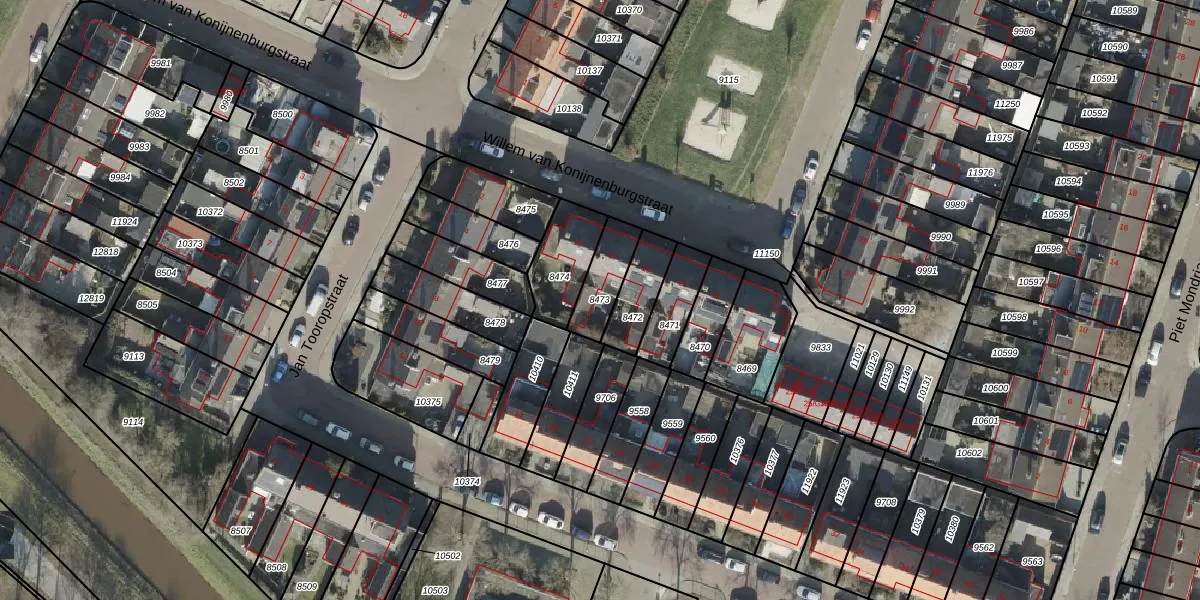 Gebruik de zoekbalk of klik op een perceel om informatie over het perceel te bekijken.