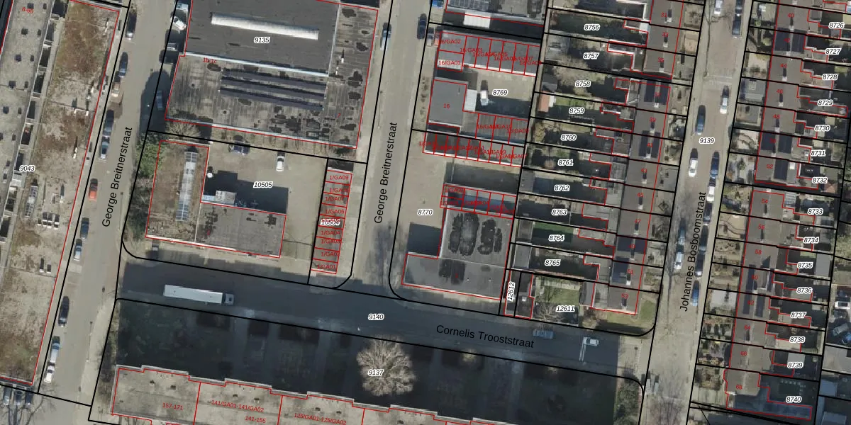 Gebruik de zoekbalk of klik op een perceel om informatie over het perceel te bekijken.