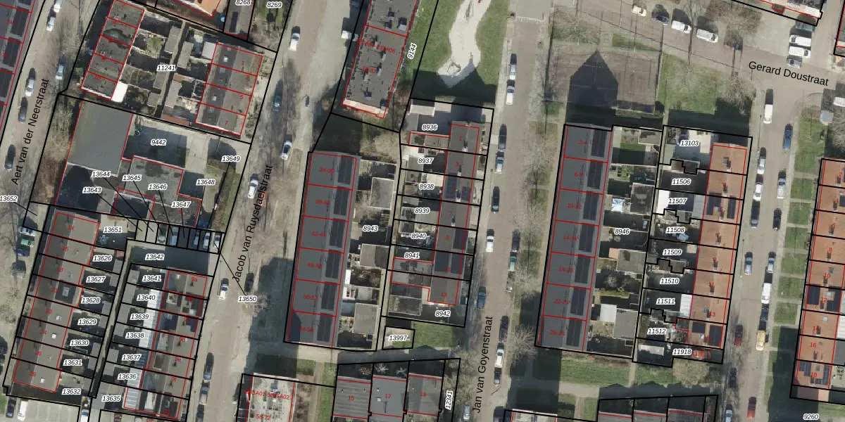 Gebruik de zoekbalk of klik op een perceel om informatie over het perceel te bekijken.