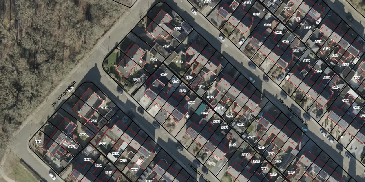 Gebruik de zoekbalk of klik op een perceel om informatie over het perceel te bekijken.
