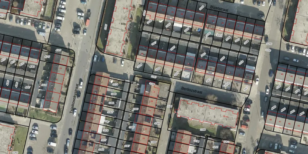 Gebruik de zoekbalk of klik op een perceel om informatie over het perceel te bekijken.