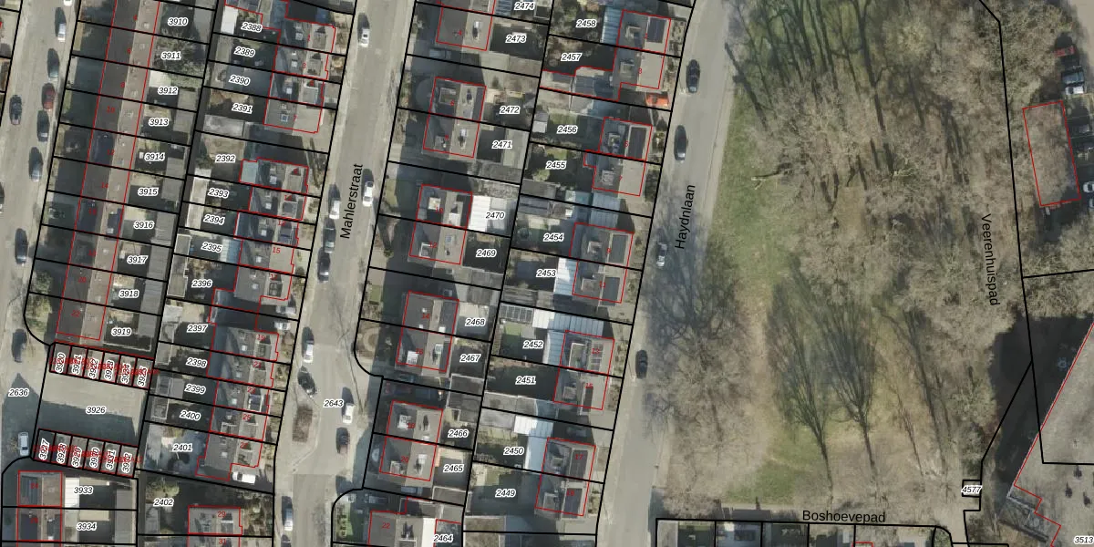Gebruik de zoekbalk of klik op een perceel om informatie over het perceel te bekijken.
