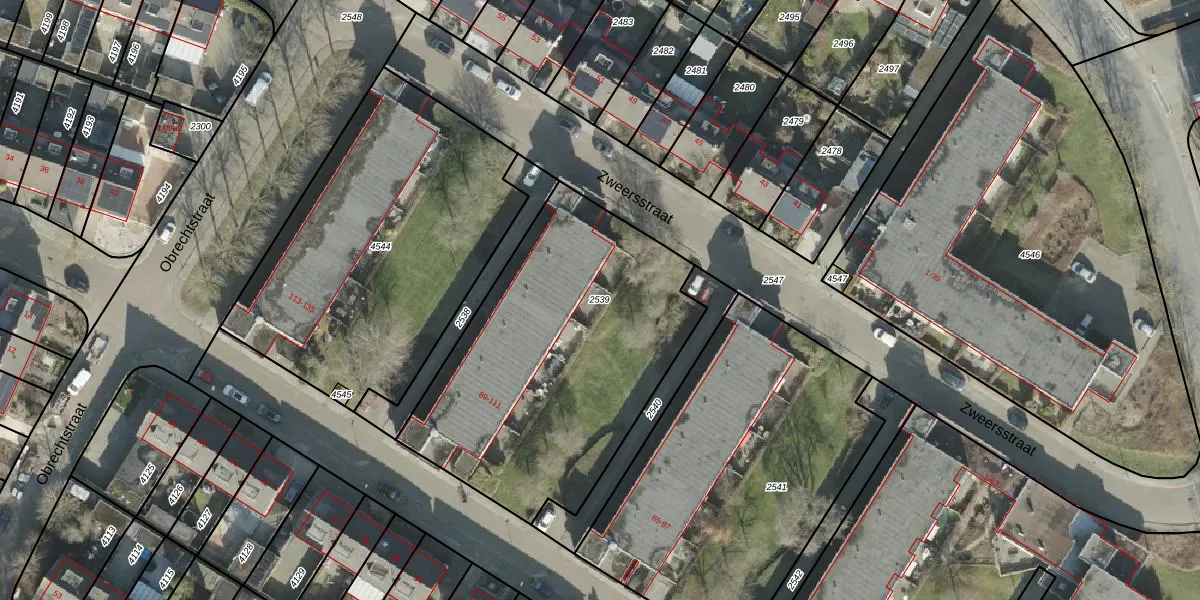 Gebruik de zoekbalk of klik op een perceel om informatie over het perceel te bekijken.