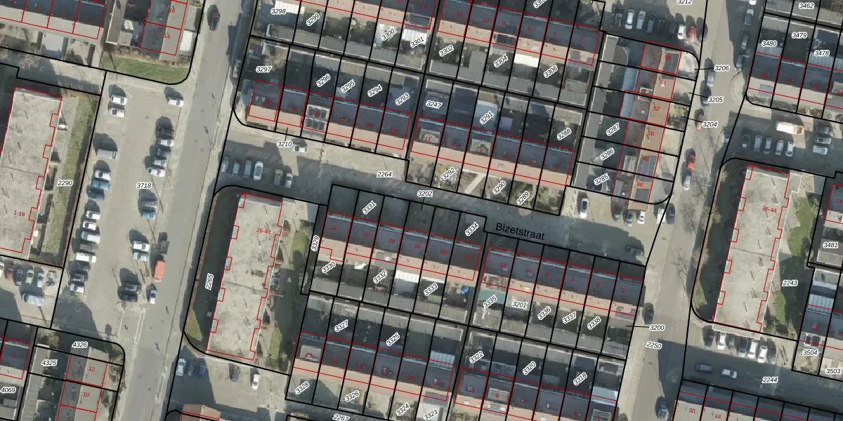 Gebruik de zoekbalk of klik op een perceel om informatie over het perceel te bekijken.