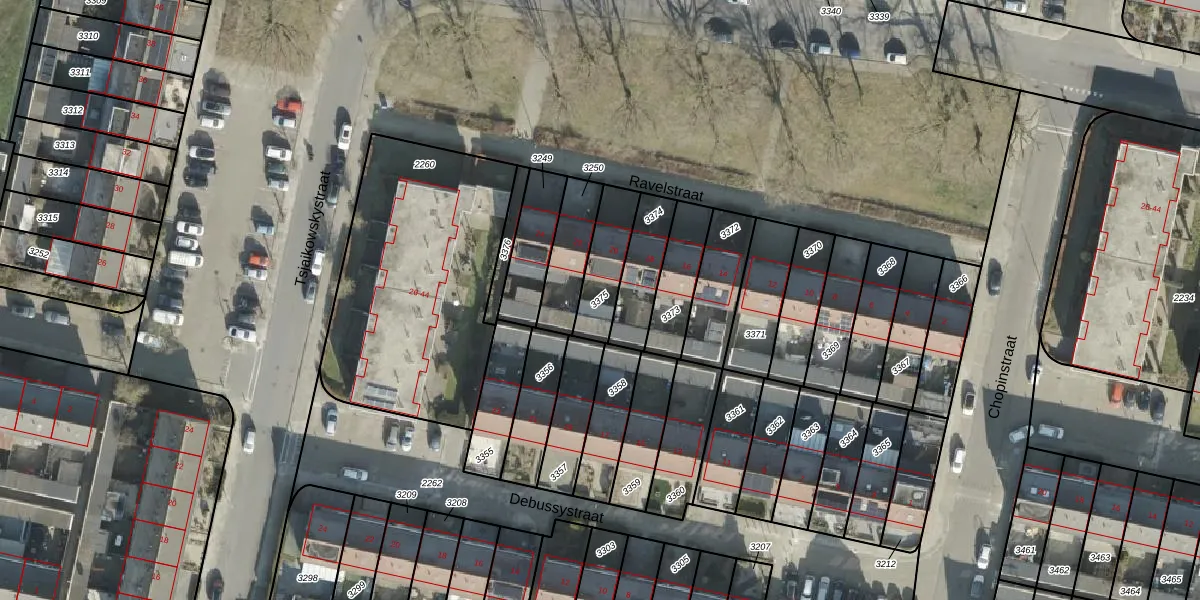 Gebruik de zoekbalk of klik op een perceel om informatie over het perceel te bekijken.