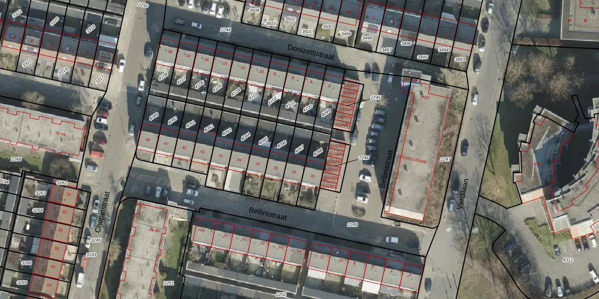 Gebruik de zoekbalk of klik op een perceel om informatie over het perceel te bekijken.