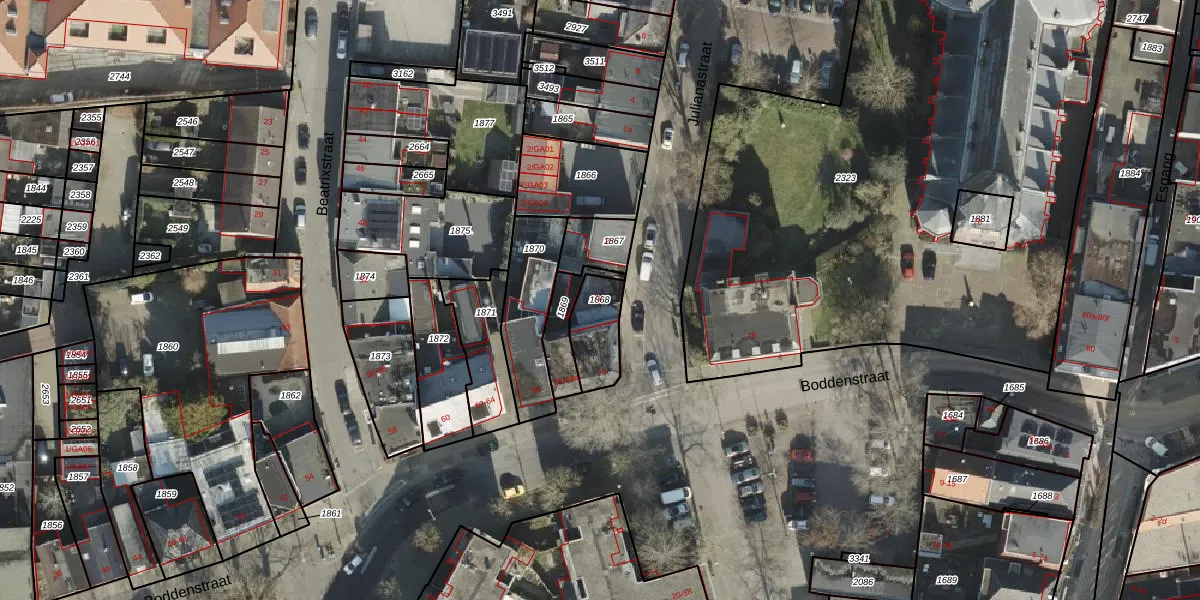 Gebruik de zoekbalk of klik op een perceel om informatie over het perceel te bekijken.