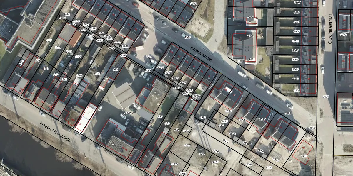 Gebruik de zoekbalk of klik op een perceel om informatie over het perceel te bekijken.