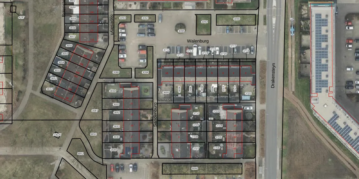 Gebruik de zoekbalk of klik op een perceel om informatie over het perceel te bekijken.