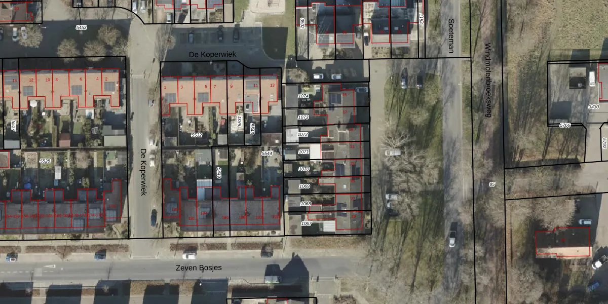 Gebruik de zoekbalk of klik op een perceel om informatie over het perceel te bekijken.