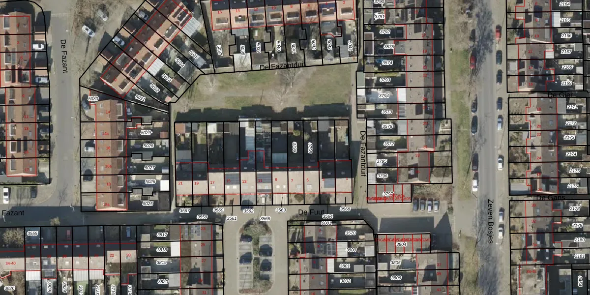 Gebruik de zoekbalk of klik op een perceel om informatie over het perceel te bekijken.