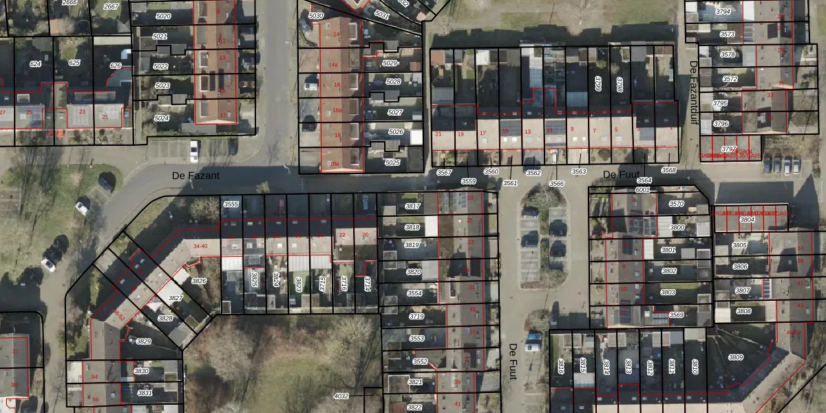 Gebruik de zoekbalk of klik op een perceel om informatie over het perceel te bekijken.