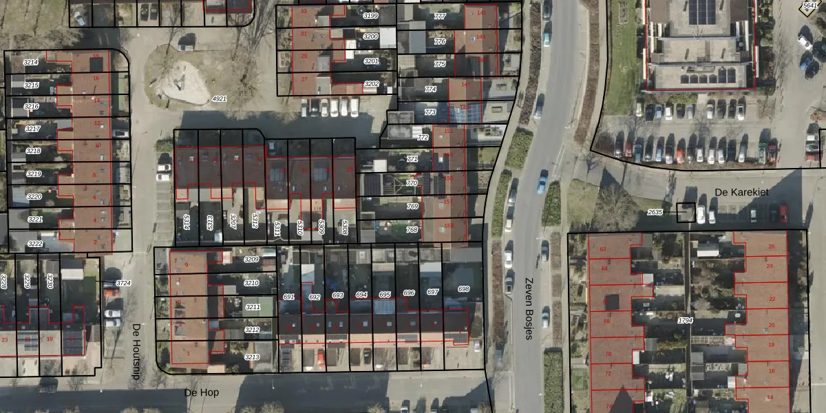 Gebruik de zoekbalk of klik op een perceel om informatie over het perceel te bekijken.
