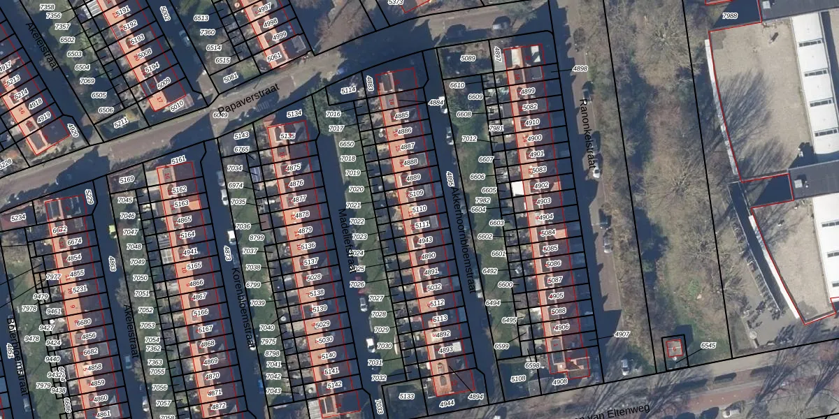 Gebruik de zoekbalk of klik op een perceel om informatie over het perceel te bekijken.