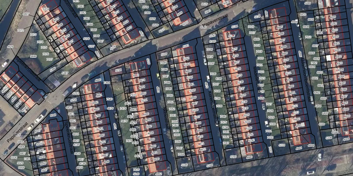 Gebruik de zoekbalk of klik op een perceel om informatie over het perceel te bekijken.
